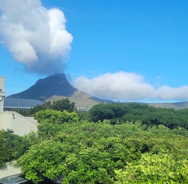 We arrived at our residence at about 1 am for the two-month stay, exhausted and excited at the same time. Our landlady helped us settle in and provided us with suggestions for restaurants within walking distance. The following day, we were happy to explore. As we stepped out of the balcony in the morning, the view that greeted us with the sunrise was breathtaking. The famous Devil's Peak mountain directly faces us. I took most of the pictures of it throughout our stay because each morning shows you a different view of the mountain. Sometimes, it is entirely covered by the cloud, and sometimes, it will be partially covered. Watching for a few minutes could also capture the cloud moving away, reflecting a different view. I was told it is one reason it is called Devil's Peak. Sometimes, you can see the reflection of the sunrise or sunset changing in minutes. (attached a picture)
